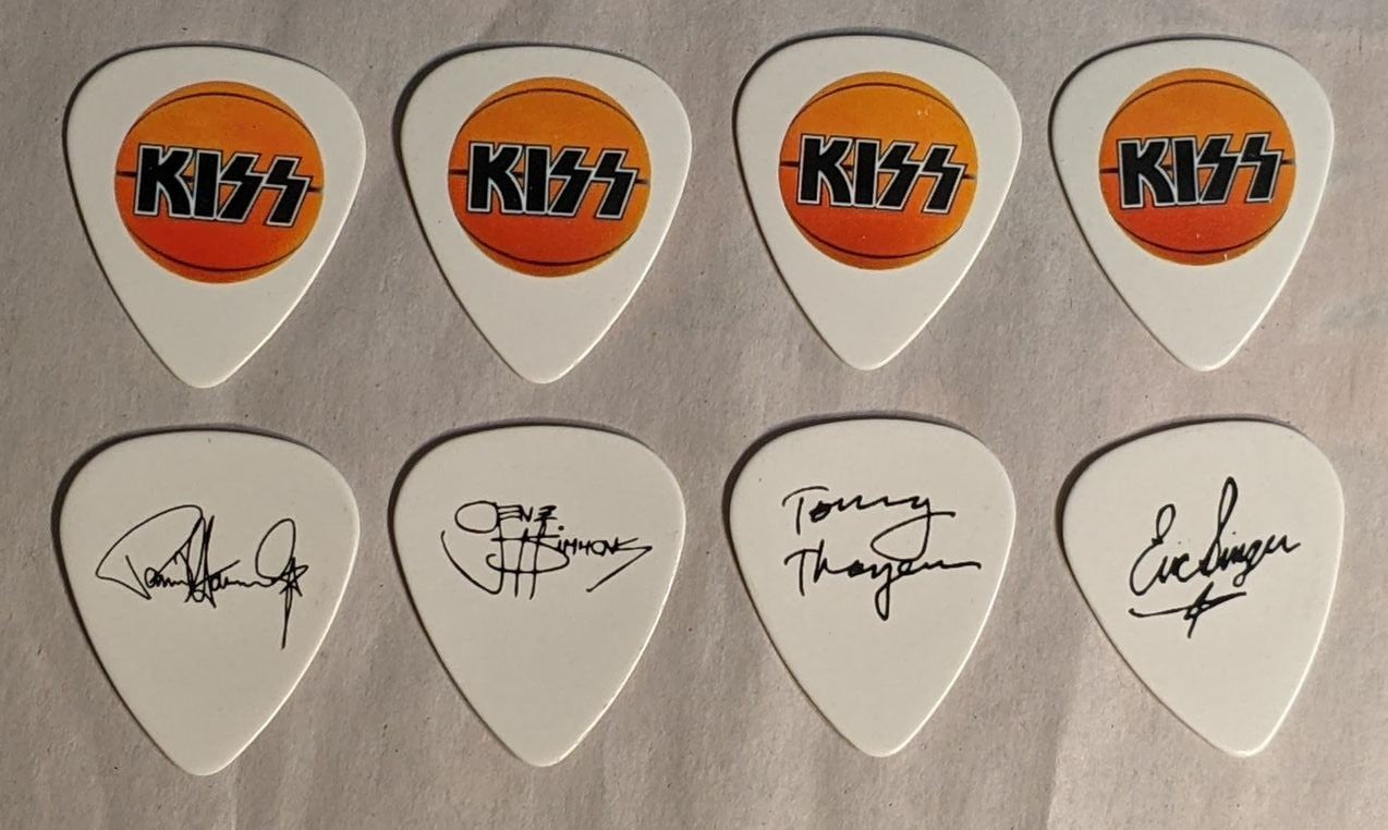 These are the exact same Guitar Picks used and thrown by the members of KISS on the road! We get a limited supply of almost every different Guitar Pick for our store. There are approximately 200 of each Guitar Pick kept aside for us by the KISS Road Crew.