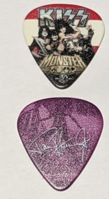 These are the exact same Guitar Picks used and thrown by the members of KISS on the road! We get a limited supply of almost every different Guitar Pick for our store. There are approximately 200 of each Guitar Pick kept aside for us by the KISS Road Crew.