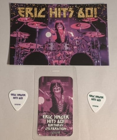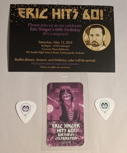 These Guitar Picks were given out at Eric Singers 60th birthday celebration in Indianapolis on May 12 2018. We have also included one of the laminates that was given out as well as the original invitation.